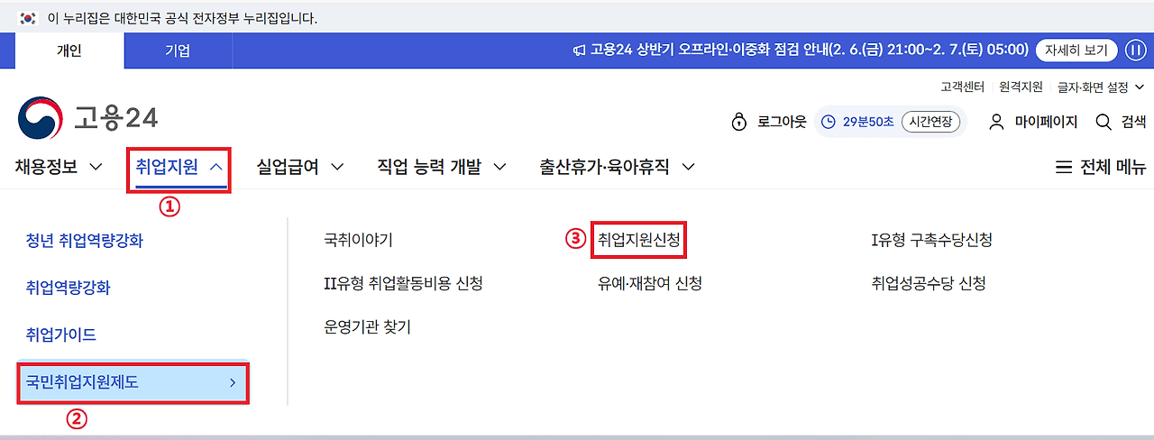2️⃣ 국민취업지원제도 신청