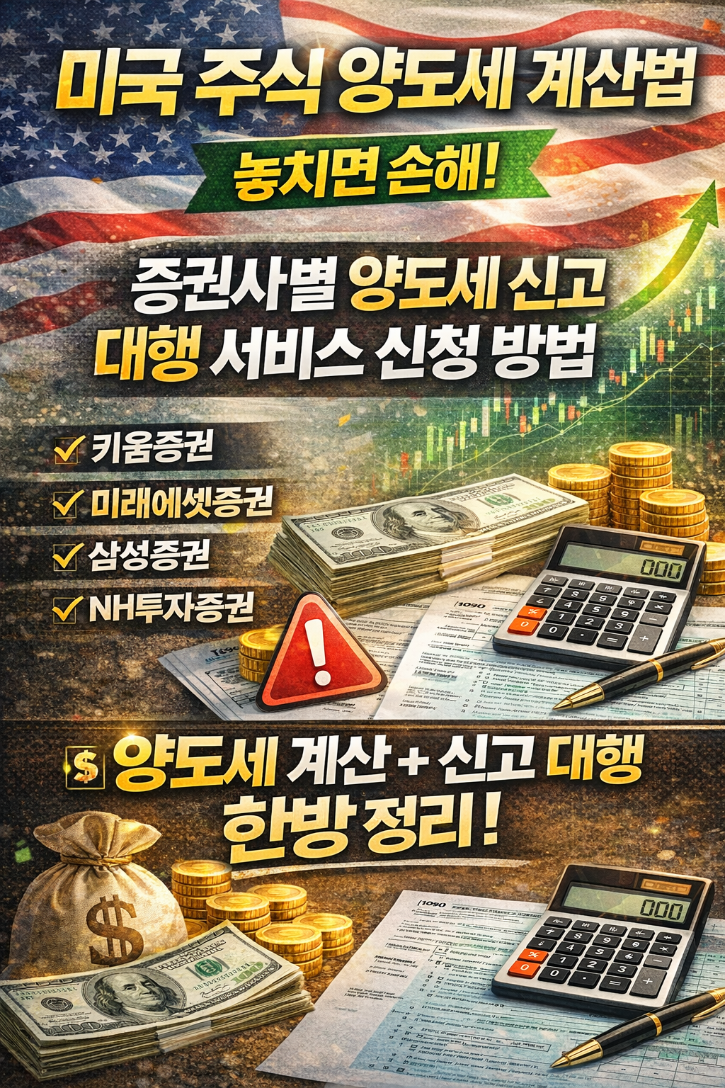 특히 5월 종합소득세 신고 기간이 되면 “얼마를 내야 하나?”, “증권사에서 대신 신고해 주나?” 같은 질문이 급증합니다. 이 글 하나로 미국 주식 양도세 계산 + 신고 방법을 한 번에 정리해드립니다.